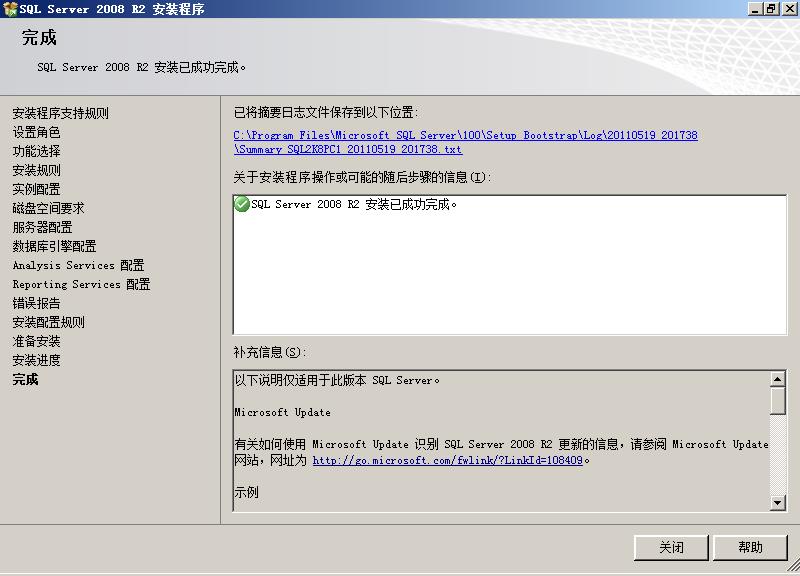 安装结束之后,摘要日志会保存在以下位置:<数据根目录>\100\SetupBootstrap\Log\<YYYYMMDD_HHMMSS>\Sumary_<PCname>_<YYYYMMDD_HHMMSS>.txt