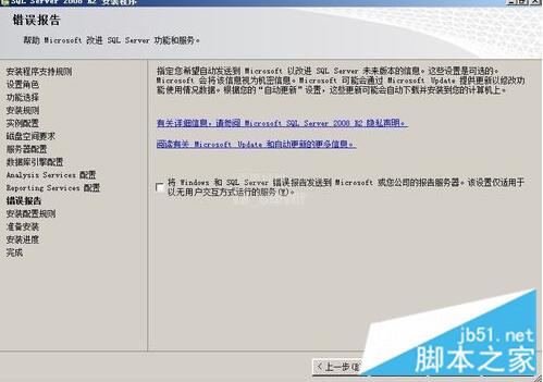 错误报告,界面中可选择是否将错误报告发送给微软。