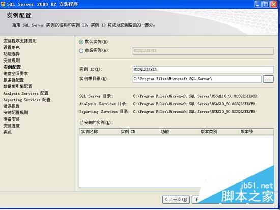 如果没有安装过其它版本的SQLSERVER,请选择默认实例,如果有安装过,则手工指定实例。如果一台电脑安装了多个实例的SQLSERVER,每个实例的端口是不一样的,当在软件中设置服务器连接地址时需要注意,例如:192.168.0.1,1433 、 192.168.0.1,1456 。