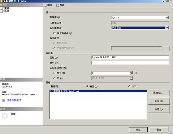 3、备份事务日志,如下图: