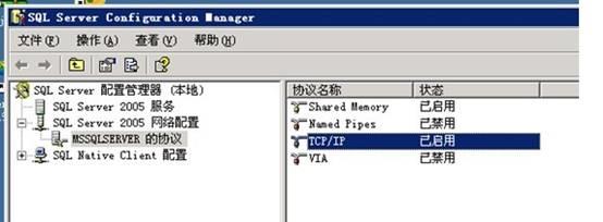 要进行以上sql server的镜像设置一定要使用sql server 的配置管理器开启TCP/IP协议,如下图