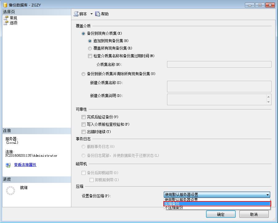 注意,如果数据库文件较大的话,最好选择'压缩备份'