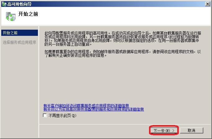 转到任意一个节点,打开“故障转移群集管理”,“配置服务或应用程序”。