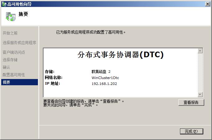 完成之后,在左侧浏览框中,可见“服务和应用程序”下面多了一个“WinCluster1DTC”的应用程序,结果如下: