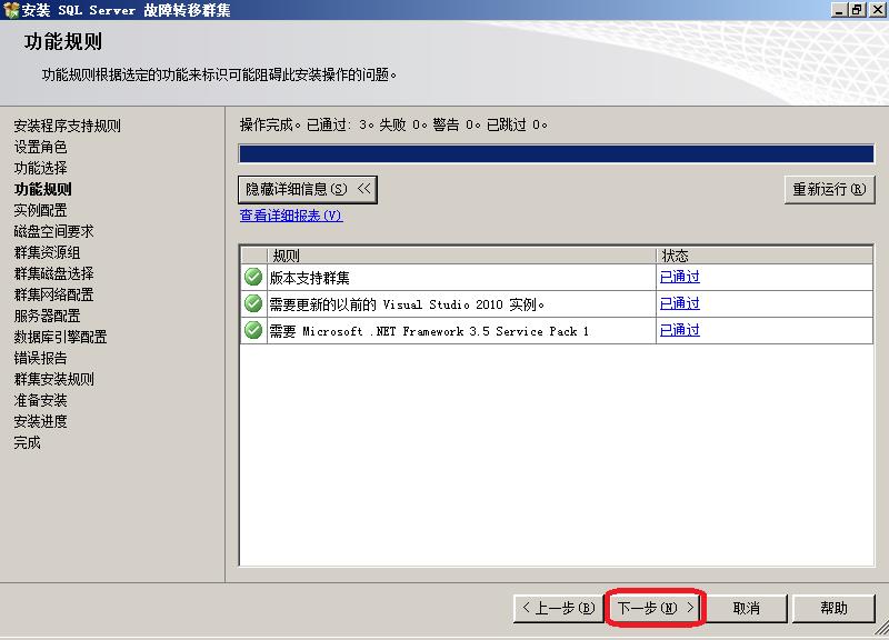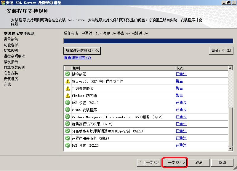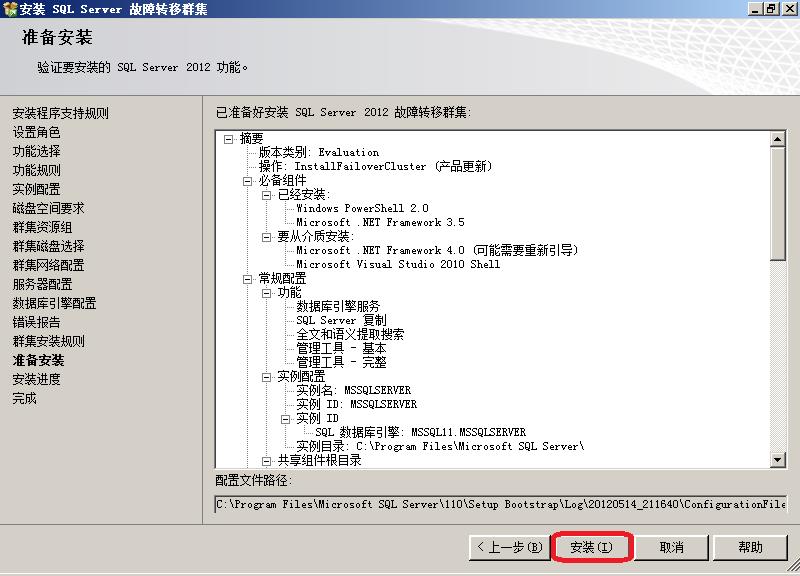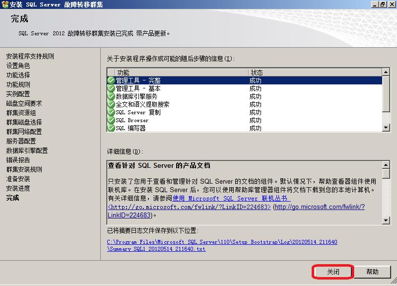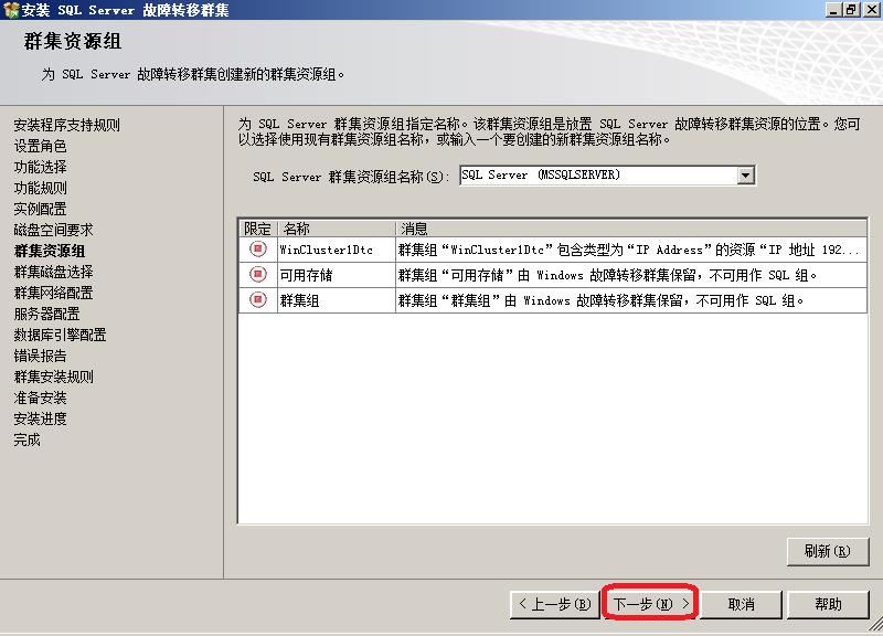 说明:安装SQL Server 2008群集,可以参考上述步骤,仅在配置“群集资源组”、“群集网络配置”等步骤稍有变化。