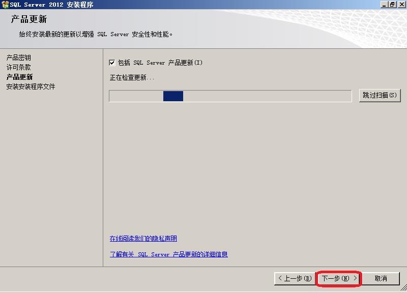 接下来,会连接到Internet,扫描产品更新,可以点“跳过扫描”
