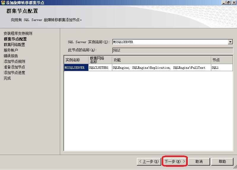 接下来,转到第二个节点,按下面的步骤在第二个节点添加SQL Server群集。