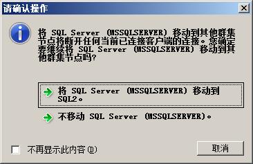 前面的操作步骤已经将SQL Server引擎安装到群集的第一个节点,但是这个时候还不能实现故障转移。因为安装了SQL Server应用程序的只有这第一个节点,在尝试切换到其他节点时会报错: