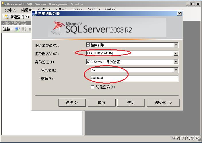 2、输入SQLServer服务器的名称或IP地址、登录名、密码-点击链接数据库