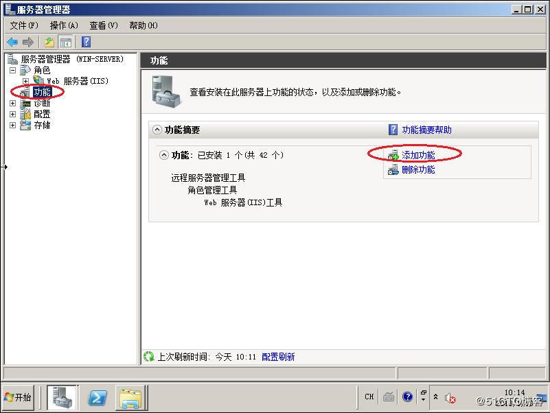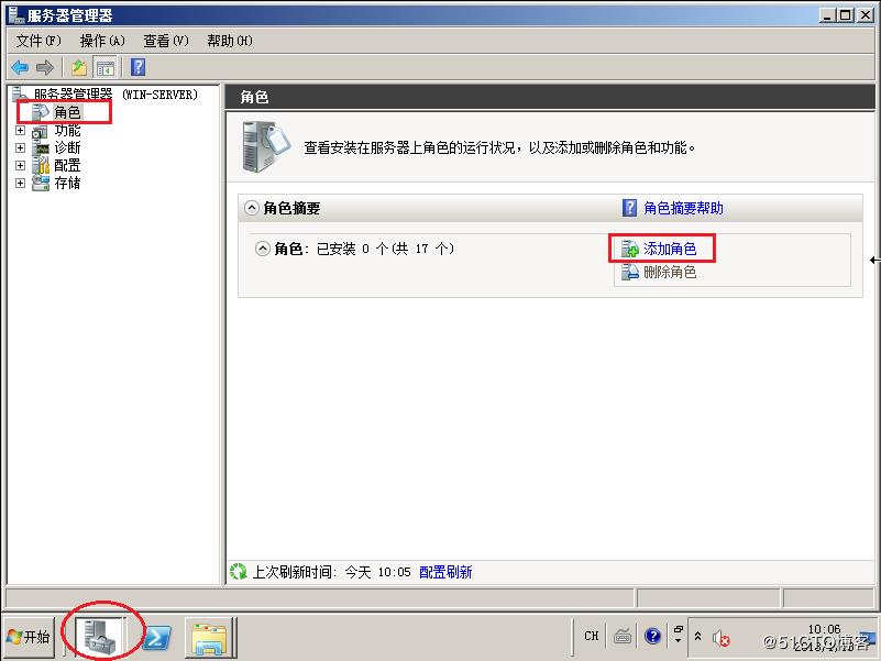 2、安装web服务。点击左下角的服务器管理器-角色-添加角色