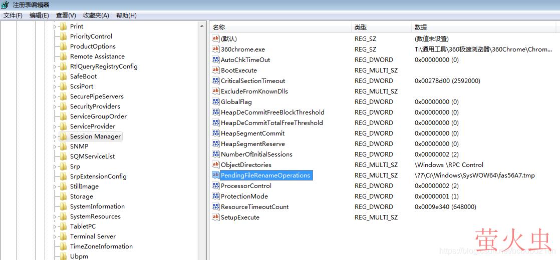 找到HKEY_LOCAL_MACHINE\SYSTEM\CurrentControlSet\Control\SessionManager