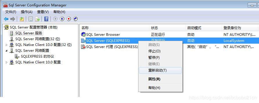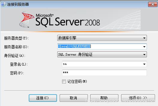 服务器名称,需要输入(local)\SQLEXPRESS,才能连接;这个是和非精简版不同的;