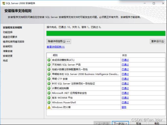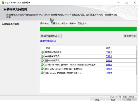 3.进入【SQL Server 2008 安装程序】界面,首先是【安装程序支持规则】