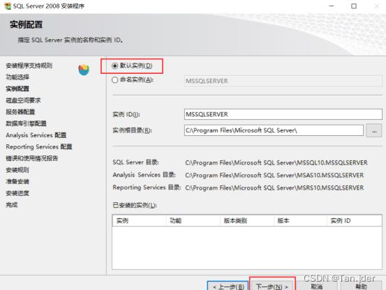 10.进入【实例配置】,全部选择默认,点击【下一步】