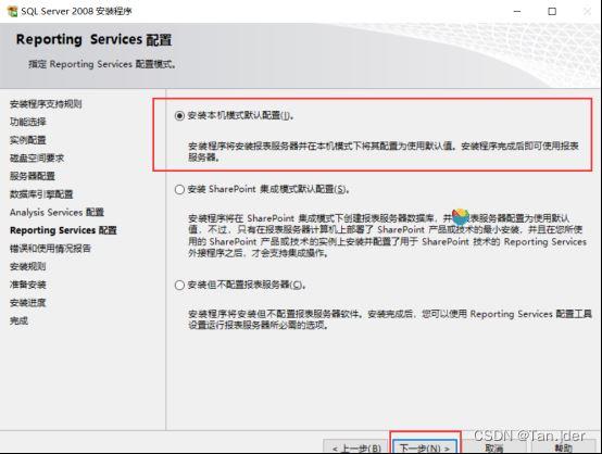 15.进入【Reporting Services配置】,直接按照默认选择第一项,点击【下一步】
