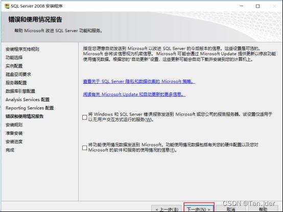 16.进入【错误和使用情况报告】,按需求选择,然后单击【下一步】