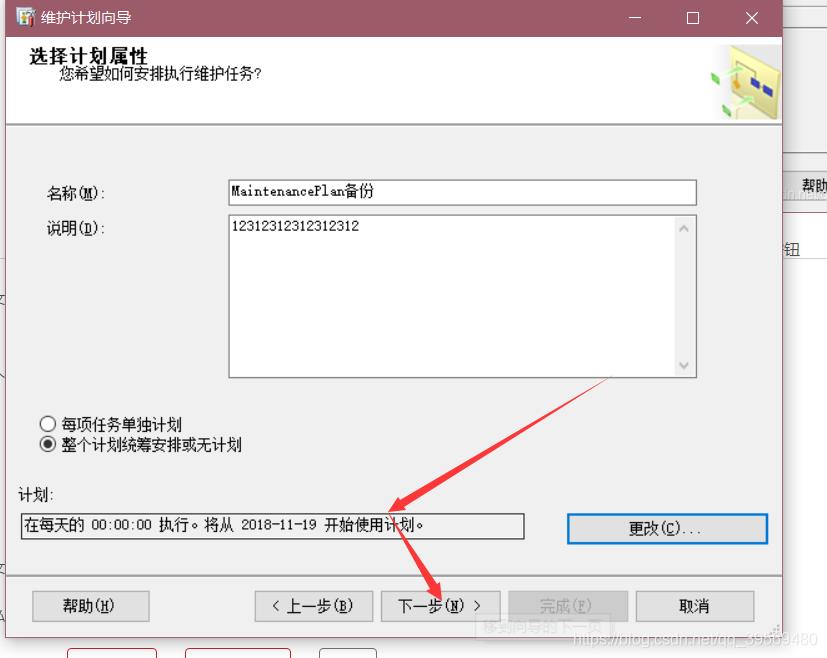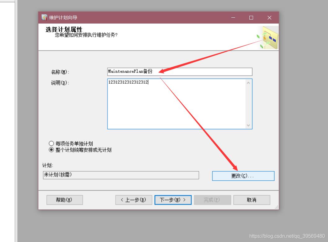 在出现的界面中把名称和说明写上。然后点击“更改”设顶备份计划