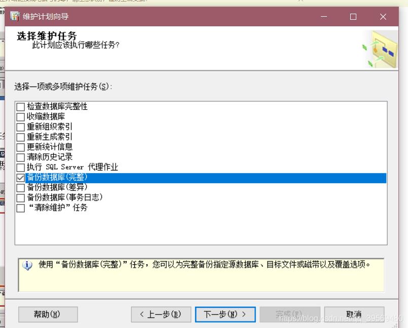 在选择维护任务界面中选择要备份的数据库文件。然后点击下一步。