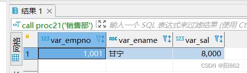 call proc21('销售部');运行输出的结果是