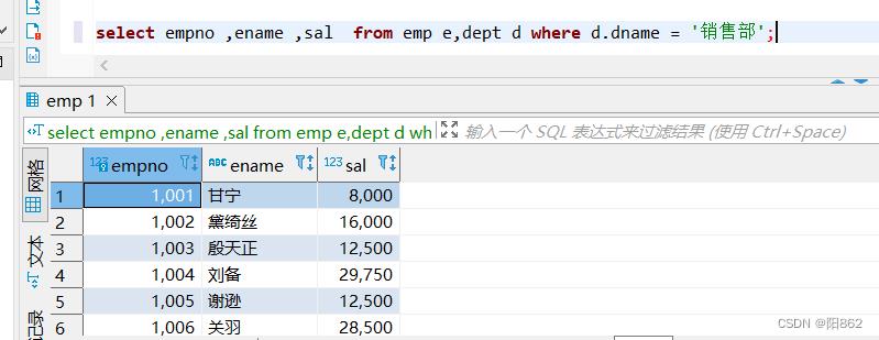 -- 需求:输入一个部门名,查询该部门员工的编号、名字、薪资,将查询的结果集添加游标