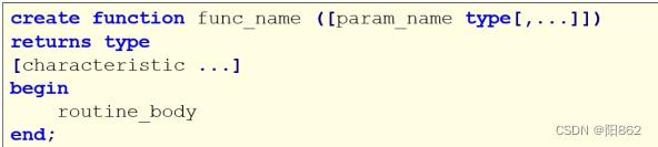 (4)characteristic:可选项,指定存储函数的特性。