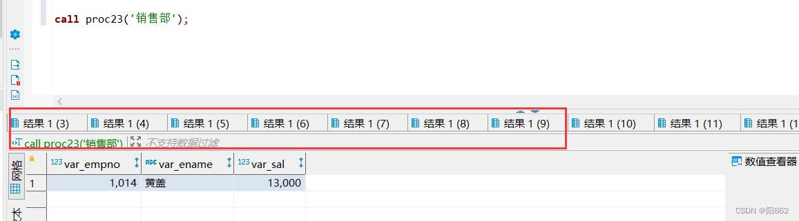 call proc23('销售部');两个的运行结果是一样的