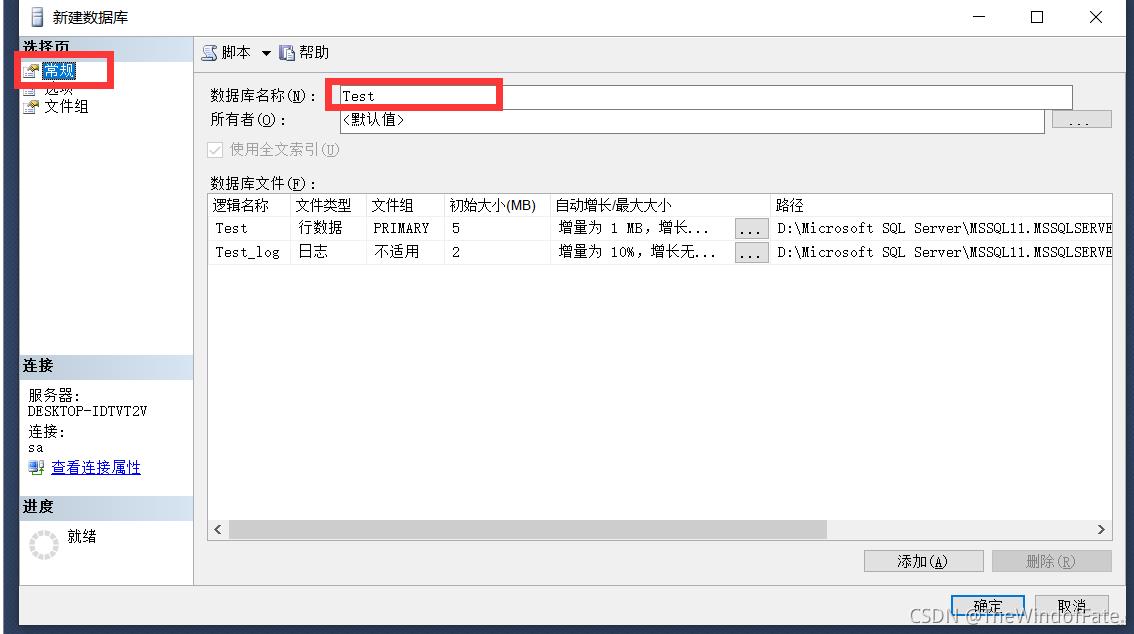 系统会自动根据填入的数据库名称创建一个数据文件和一个日志文件。