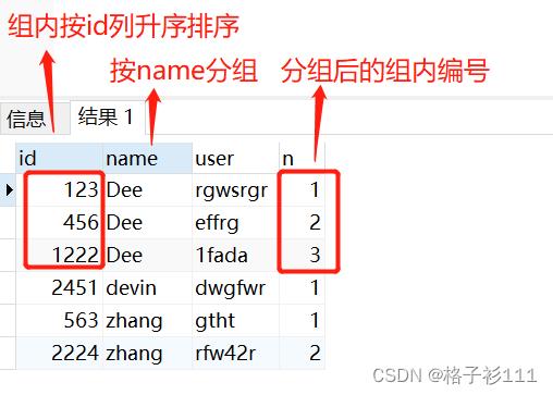 2.对结果集按照指定列进行分组,并在组内按照指定列排序