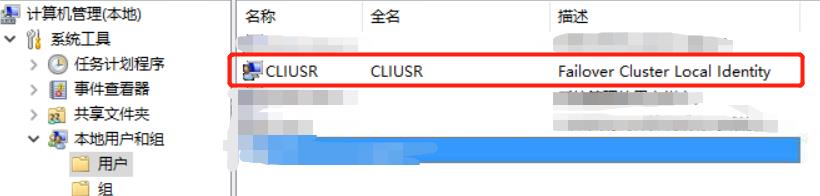 5、群集创建完成后,本机会自动生成一个用户CLIUSR,此用户是用来启动和运行群集服务的,千万不要动它,否则会导致群集服务中断。