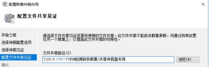 5、配置仲裁共享文件夹:去域控下非数据库节点服务器上建立一个共享文件夹(如:\\10.0.XXX.XXX\WIN故障转移群集\共享仲裁盘专用),专门用于仲裁共享文件,授予wsfc_sqlserver@AAA.com所有共享权限。