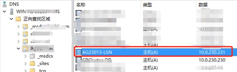 5.7.2、域控会根据“侦听器名称”自动产生一条计算机记录 和一条主机(A)记录: