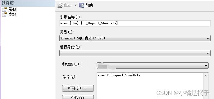 2.1)步骤名称(一般是exec 存储过程名,我的是exec [dbo].[PR_ShowData])
