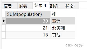 统计亚洲和北美洲的人口数量,要求结果如下: