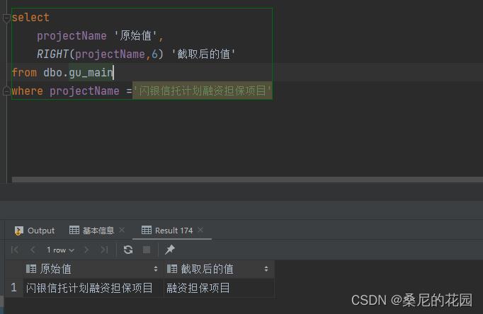 含义: 从字符右边第最后1位开始往前截取指定数量的字符。