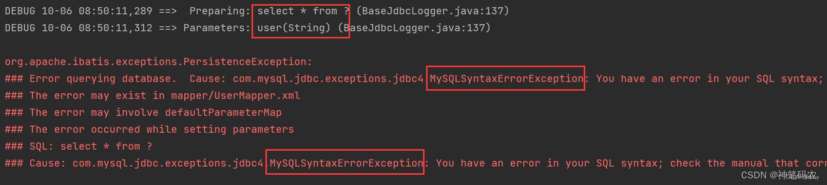 </select>结果报错,原因在于#{}为占位符赋值,传参为String的话就会自动补上单引号'',而表名不允许添加单引号,所以导致出错。