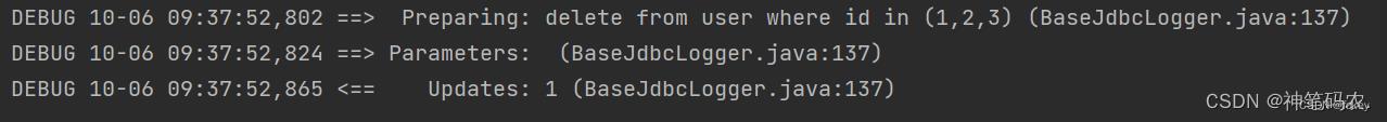 由于id数组的长度是不确定的,所以我们不能确定参数的个数,但是我们可以使用in关键字,这个时候我们将id数组转为字符串进行传参就好了。[1,2,3] => 1,2,3