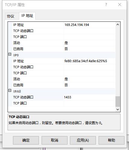 4.将所有TCP动态端口的0删掉,在IPALL-TCP动态端口 填写1433,如上图
