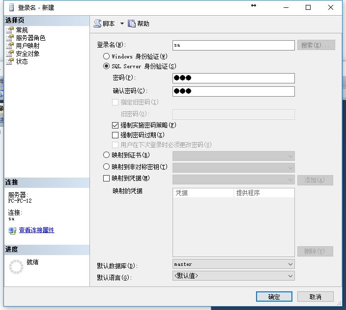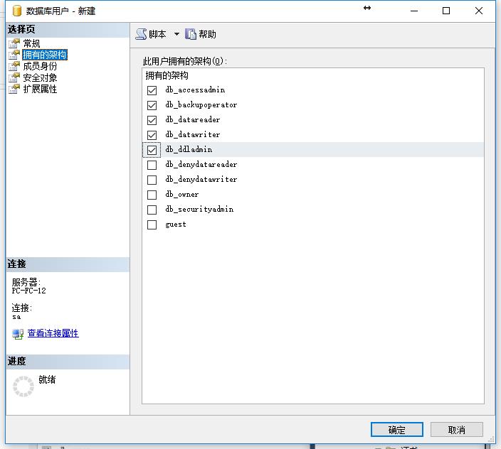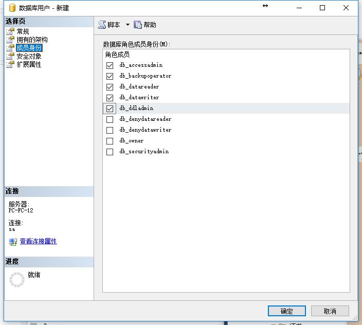 9.选择要使用的数据库,在安全性中右键用户——新建用户,给刚刚建立的sa用户名配置相应的内容