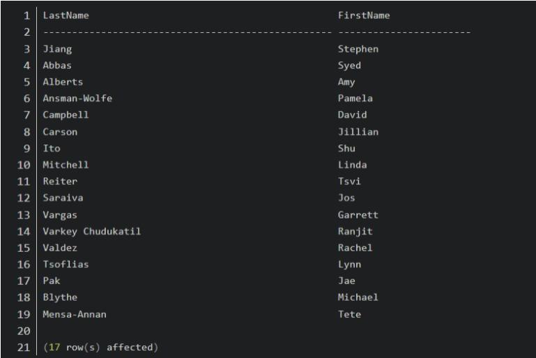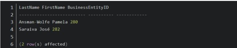 SELECT DISTINCT c.LastName, c.FirstName, e.BusinessEntityID