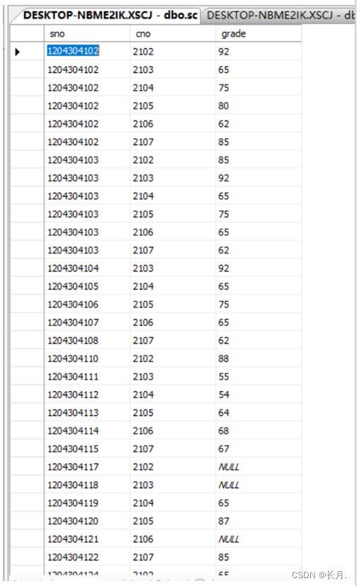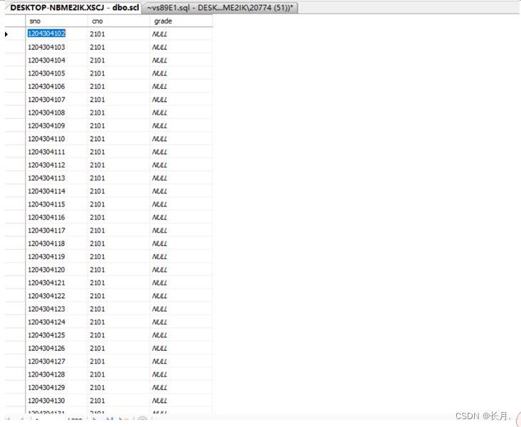 5.用格式二实现查询所有学生的学号、姓名、选修课程号和成绩