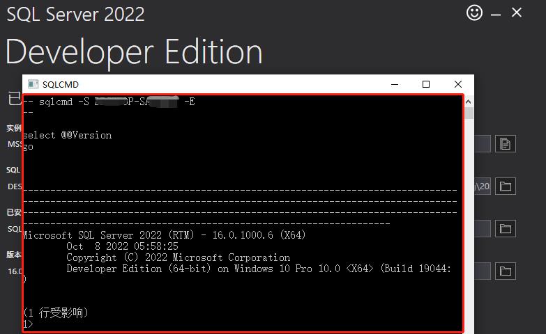 这时会弹出SQLCMD命令行窗口,只要显示内容如下图所示,就说明我们本地的SQL Server安装完成。