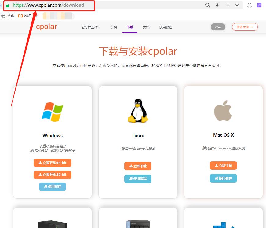 接下来,我们继续安装远程连接SQL Server的关键软件:Cpolar。与Microsoft SQL Server一样,我们可以登入Cpolar的官网(www.cpolar.com),点击首页上方的下载按钮,进入cpolar下载页面,下载所需版本的cpolar软件。当然,我们这里选择Windows版本进行下载。