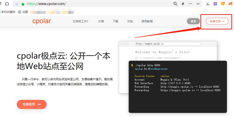 免费版的临时数据隧道不需要进行cpolar云端设置,可直接进行cpolar客户端设置,但也就无法设置能够长期稳定存在的数据隧道。