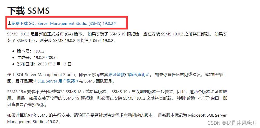 下载地址:https://learn.microsoft.com/zh-cn/sql/ssms/download-sql-server-management-studio-ssms?redirectedfrom=MSDN&view=sql-server-ver16