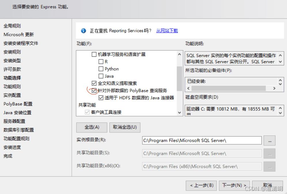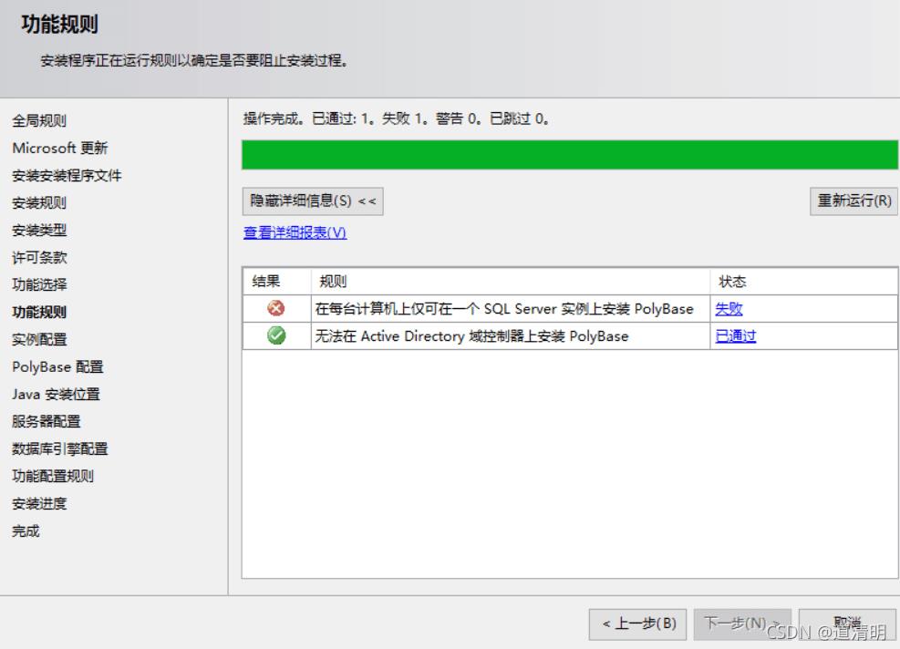 你也可以返回上一步,取消这个PolyBase,就可以了