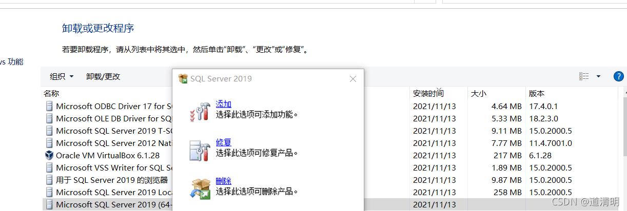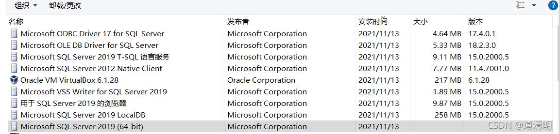 1. 打开控制面板——>卸载——>Microsoft SQL Server 2019(64-bit)