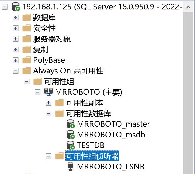 GO创建好包含一致性组后,会为该AG自动创建2个数据库:[AGNAME_master]、[AGNAME_msdb],还会创建侦听器,这看起来比普通的一致性组多了两个数据库:AGNAME_master和AGNAME_msdb。