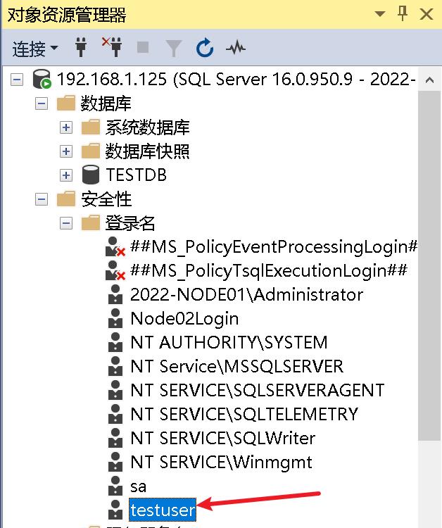 test_admin test 0x8CEFB4D480A8E54F97C86ADF9E6934FD 2022-10-18 14:40:02.9133、连接到辅助节点,检查包含一致性组中的元数据是否已同步(此处建议使用SSMS工具查询,sqlcmd需要使用-Q参数提前写好语句)